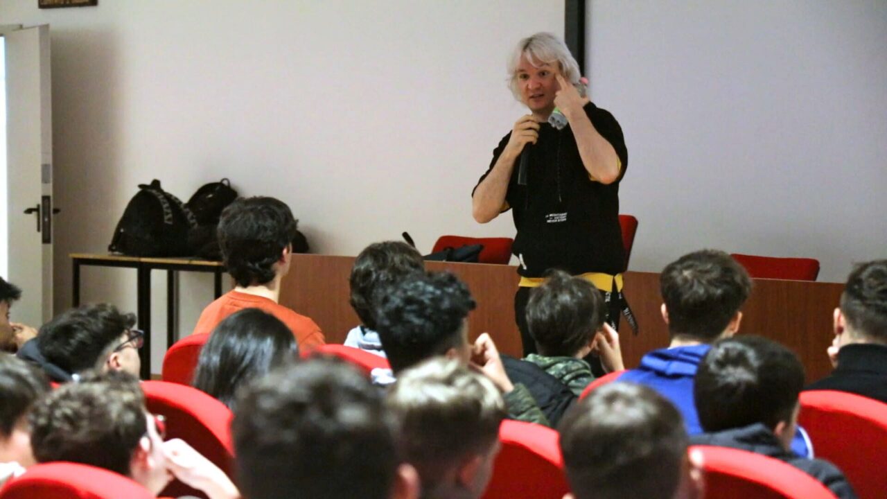 Per più di un’ora di lezione Adrian Fartade ha letteralmente travolto gli studenti con energia incontenibile e grande preparazione, spaziando tra ricerche scientifiche, curiosità ed esempi pratici a tratti esilaranti.