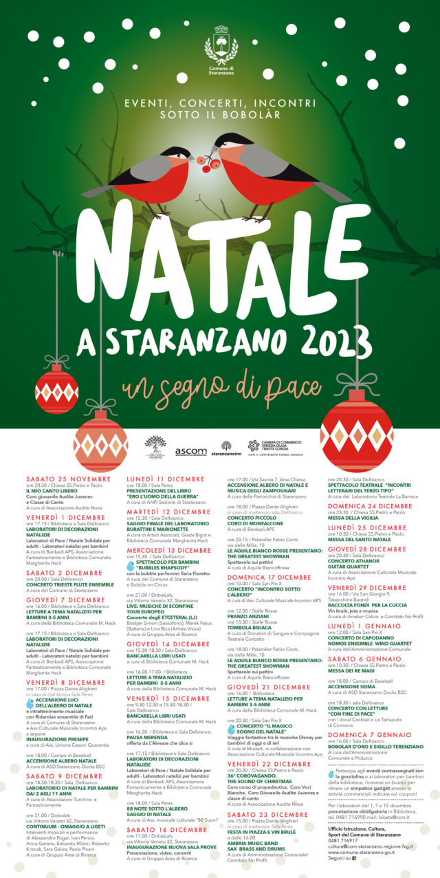 A Staranzano si respira aria di festa! Tantissime sono le attività organizzate dal Comune per trascorrere il periodo natalizio in compagnia delle associazioni del territorio e non solo!